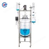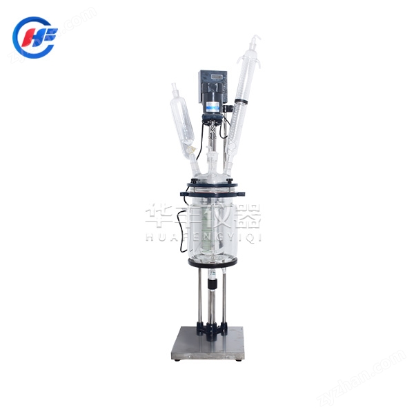 本機(jī)具有電動恒速攪拌系統(tǒng)、冷凝、滴加系統(tǒng),釜體夾層需外接加熱或制冷的循環(huán)設(shè)備。在攪拌物料的同時,通過夾層注入循環(huán)的熱溶液或冷卻液,對釜內(nèi)的物料進(jìn)行恒溫的加熱或制冷。物料進(jìn)行加熱反應(yīng)時,在真空條件下可以提高蒸發(fā)效率(需連接真空裝置),溶媒蒸汽經(jīng)玻璃冷凝盤管時冷卻成液體(需連接冷卻裝置),可回流到釜內(nèi),也可通過回流彎頭下部閥門進(jìn)行回收。反應(yīng)完畢,物料可從釜底的側(cè)出料口放出。