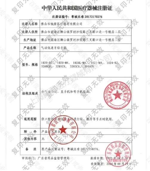 中華人民共和國(guó)醫(yī)療器械注冊(cè)證